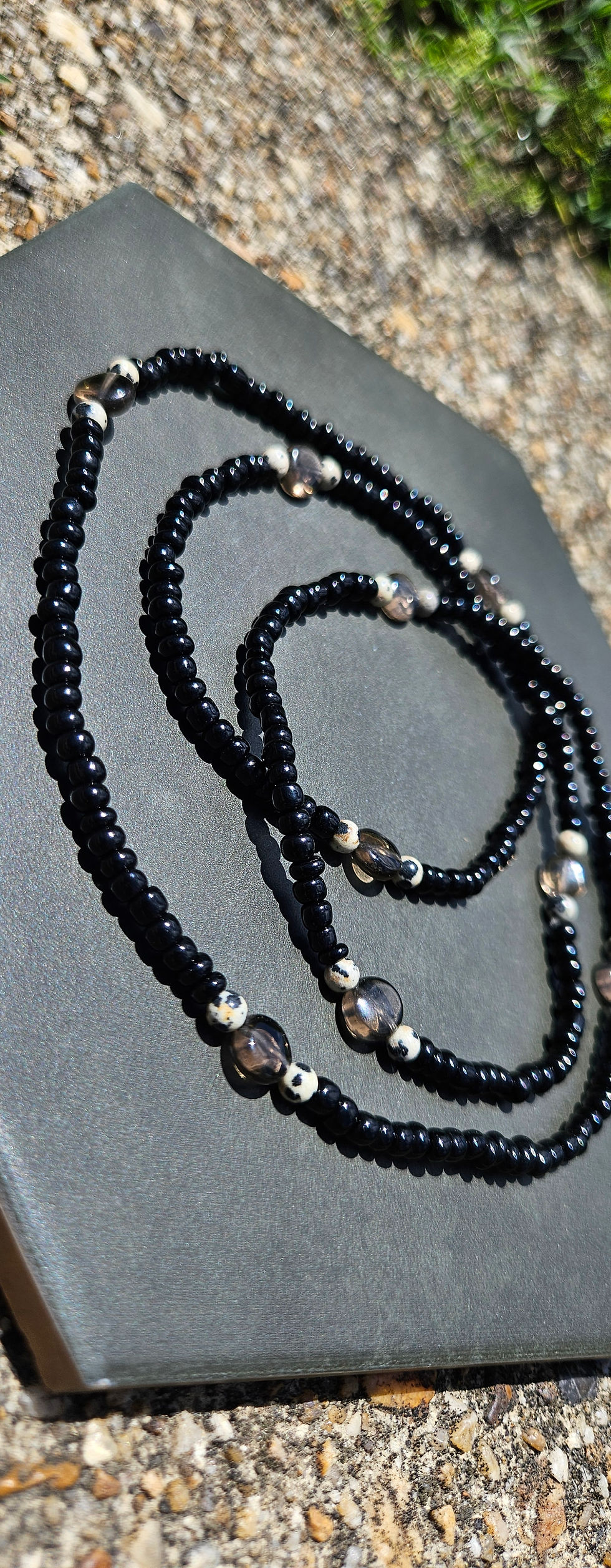 31" Blue Aqua Terra and Yellow Bloom Bead