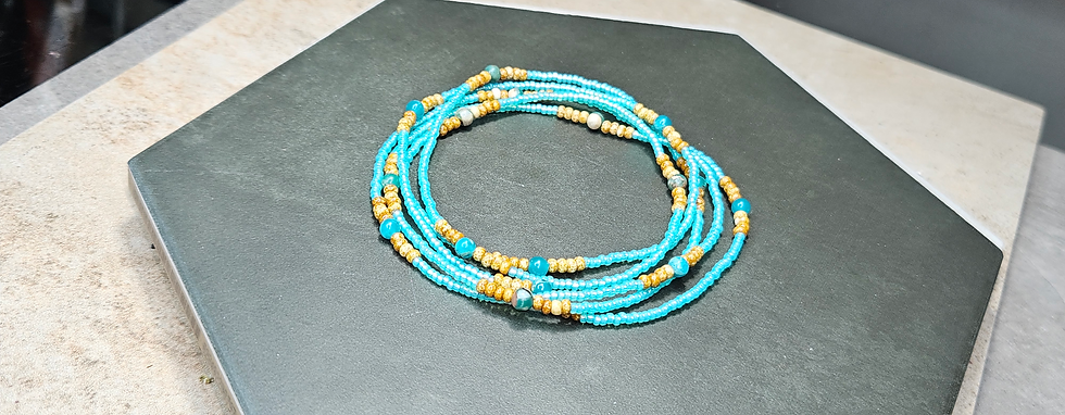 39" Blue Aqua Terra and Yellow Bloom Bead